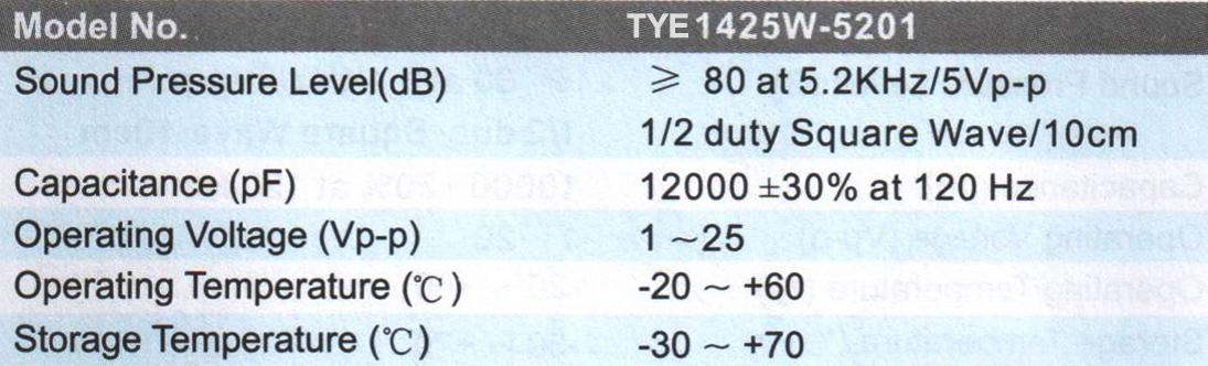 TYE1425W压电蜂鸣器